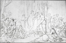 DW_296/QUVZ_04/WK_02 Pan und Satyr aus der Götterversammlung mit der Aufnahme des Herkules in den Olymp (Westseite) (Wagner, Johann Martin von)