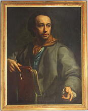 279/WK_02 Selbstbildnis mit Palette und Bild auf Staffelei (Fabbrini, Giuseppe Antonio)